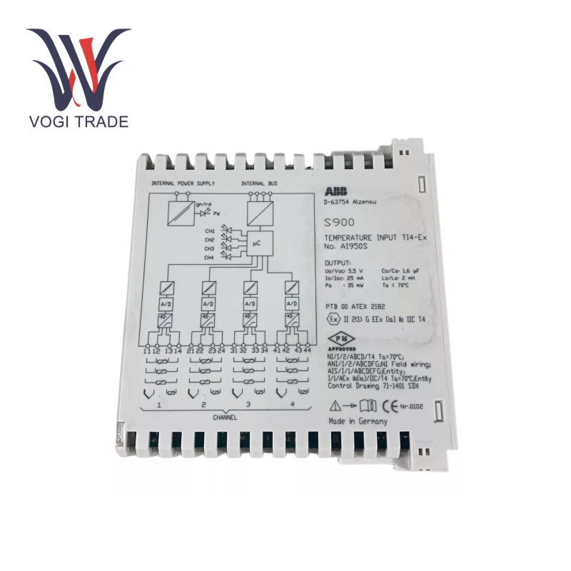 การวัดอุณหภูมิ: โมดูล ABB AI950S อ่านสัญญาณอุณหภูมิจากเซ็นเซอร์ที่แตกต่างกันและแปลงสัญญาณอะนาล็อกเป็นสัญญาณดิจิตอลสำหรับการประมวลผลที่ตามมาโดยระบบควบคุม