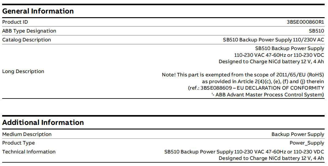 SB510 เป็นส่วนประกอบพลังงานสำรองที่สำคัญในระบบควบคุมกระบวนการแบบกระจาย ABB Advant Master 3BSE000860R1 ถูกกำหนดให้เป็นแหล่งจ่ายไฟสำรอง ฟังก์ชันหลักคือการจ่ายไฟ DC สั้นๆ แต่สำคัญให้กับหน่วยความจำที่สำคัญในระบบ Advant Master เมื่อแหล่งจ่ายไฟ AC หลักล้มเหลวหรือถูกขัดจังหวะ เพื่อป้องกันการสูญเสียโปรแกรมและข้อมูลสำคัญที่เกิดจากไฟฟ้าดับกะทันหัน