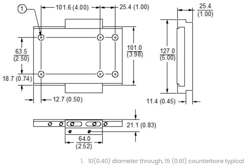 ความกว้างขั้นต่ำ 89.4 มม. (3.52 นิ้ว) บวกกับการกวาดล้างเพิ่มเติม 3.05 มม. (0.12 นิ้ว) เพิ่มเติมสำหรับการกำจัด