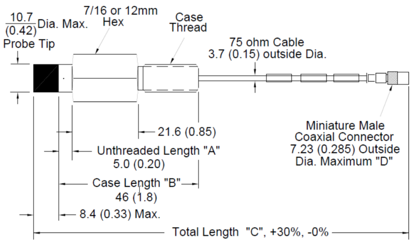 สายเคเบิล: 75Ω แบบสามแกน, หุ้มฉนวน FEP, ความยาวมาตรฐาน 1.0 เมตร