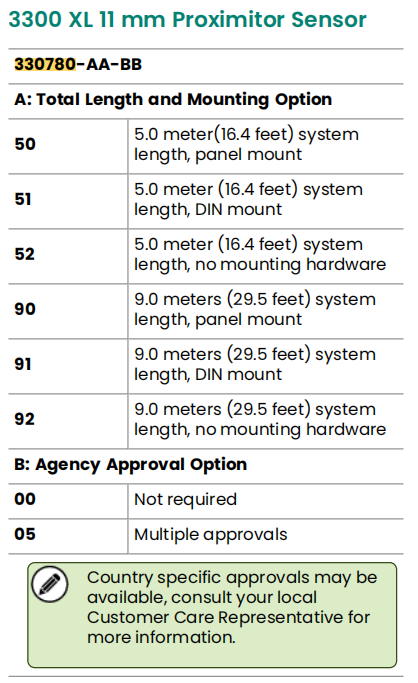 ประเภทผลิตภัณฑ์ 3300 XL 11 มม. พร็อกซิมิเตอร์เซนเซอร์