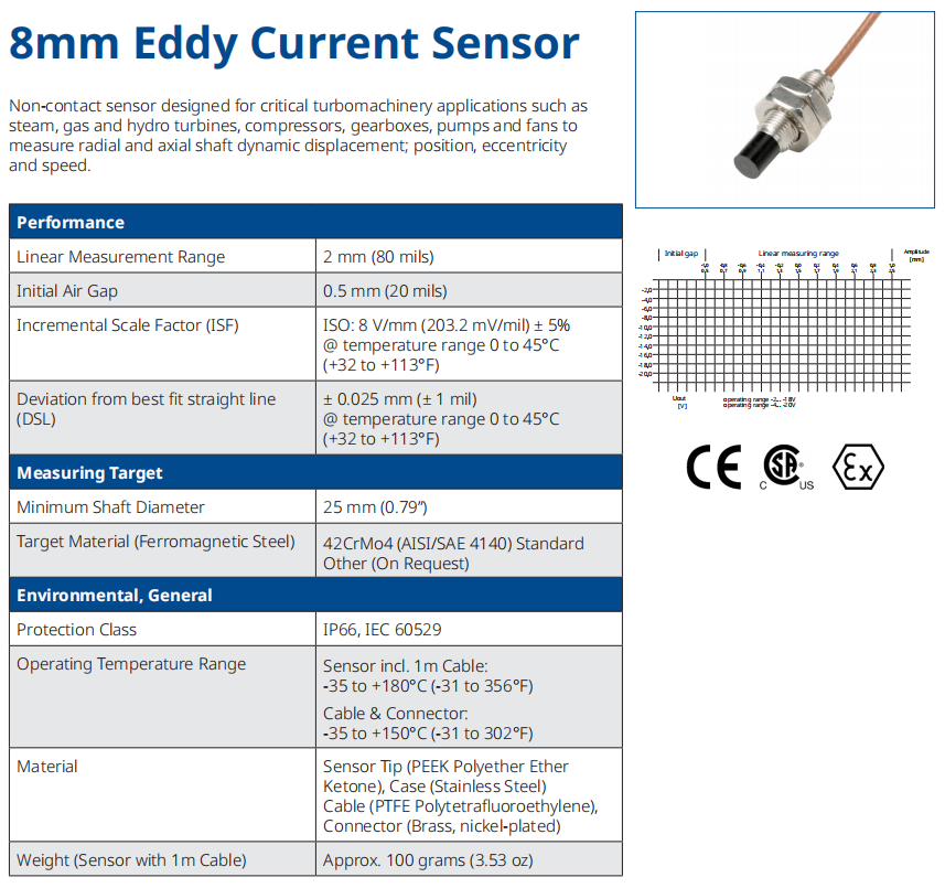 ตัวโพรบสามารถทำงานได้เป็นเวลานานที่อุณหภูมิ -35°C ถึง +180°C เทคโนโลยีการชดเชยอุณหภูมิภายในช่วยให้มั่นใจได้ว่าความไวจะเบี่ยงเบนไปน้อยที่สุดในระหว่างการเปลี่ยนแปลงอุณหภูมิที่รุนแรง เช่น การสตาร์ทขณะเครื่องเย็น การทำงานเต็มกำลัง และการปิดเครื่องฉุกเฉิน