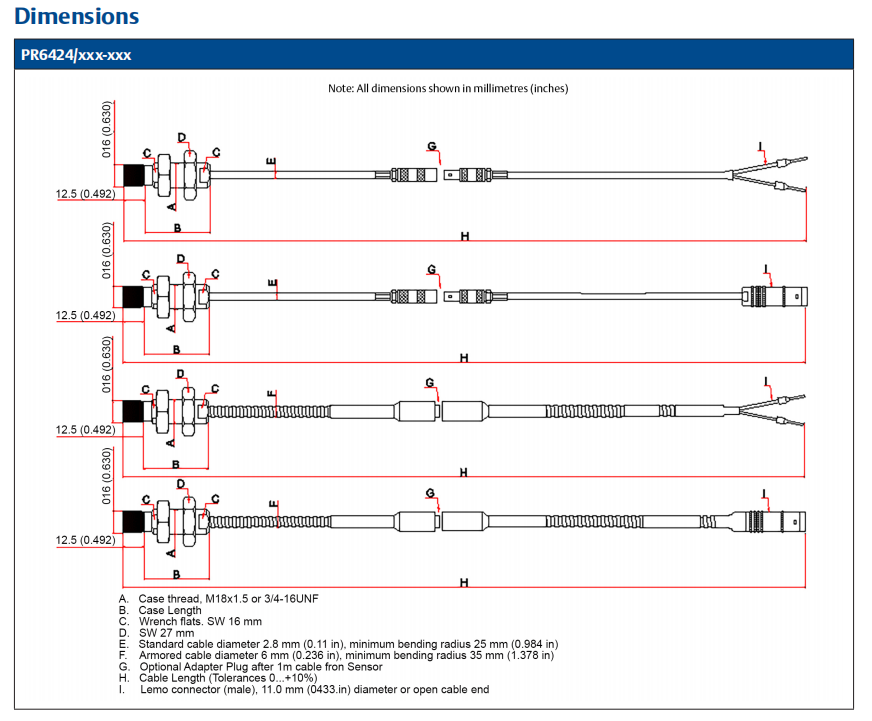 ข้อมูลจำเพาะของเซ็นเซอร์ PR6424/011-040