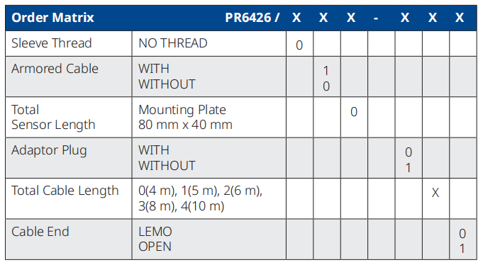 PR6426/010-110 เป็นเซ็นเซอร์วัดกระแสไหลวนที่มีเส้นผ่านศูนย์กลางโพรบ 32 มม. ขนาดโพรบที่ใหญ่ช่วยให้สามารถสร้างสนามเหนี่ยวนำที่ลึกและกว้างขึ้นได้ จึงทำให้สามารถวัดชิ้นงานได้ในระยะไกลมากขึ้น และไม่ไวต่อความไม่สม่ำเสมอเล็กน้อยบนพื้นผิวที่กำลังวัด