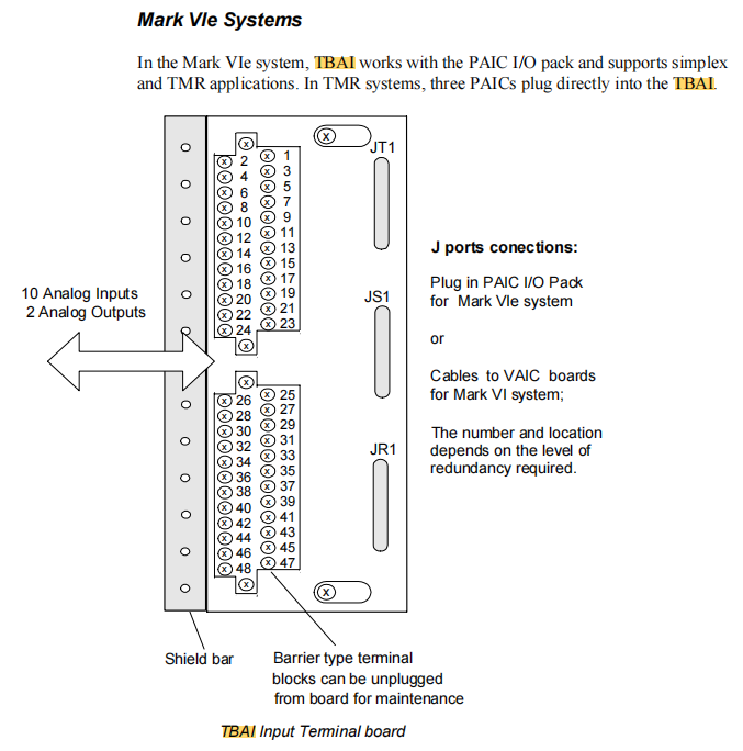 ในยุค Mark VIe มีการนำสถาปัตยกรรม I/O ที่แยกออกจากกันโดยสิ้นเชิงที่เป็นนวัตกรรมใหม่มาใช้ การเกิดขึ้นของแผงเทอร์มินัล TBAI/TBAO เป็นผลมาจากการแสวงหาความสามารถในการบำรุงรักษาและความน่าเชื่อถือในการปฏิบัติงานด้านวิศวกรรมอย่างสูงสุด แนวคิดการออกแบบนี้ประสบความสำเร็จอย่างมาก และได้รับการยอมรับจากผู้ผลิต DCS ระดับไฮเอนด์รายอื่นๆ มากมาย