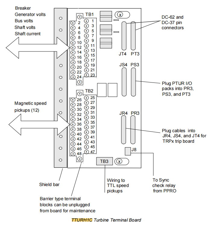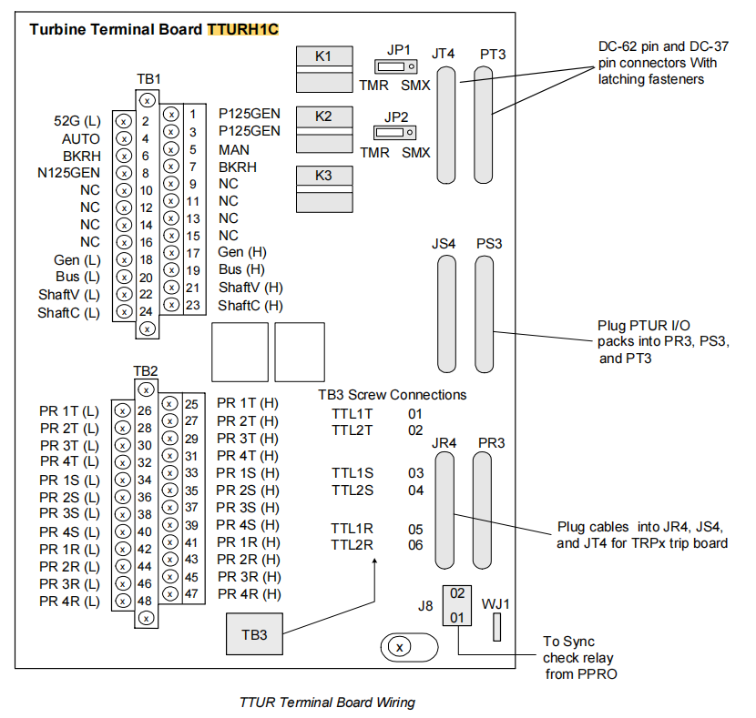 TTURH1CED เป็นหน่วยประมวลผลทางกายภาพขั้นสุดท้ายของตรรกะการป้องกัน เมื่อตัวควบคุม Mark VIe ตรวจพบสภาวะใดๆ ที่เป็นอันตรายต่อความปลอดภัยของอุปกรณ์ ตัวควบคุมจะส่งคำสั่งตัดการทำงานไปยังโมดูล PTUR จากนั้น PTUR จะขับเคลื่อนรีเลย์บนบอร์ด TTUR เพื่อทำงาน โดยตัดการจ่ายน้ำมันเชื้อเพลิงโดยตรงหรือกระตุ้นการเคลื่อนที่ของกลไก ส่งผลให้สามารถปิดเครื่องฉุกเฉินได้ภายในมิลลิวินาที