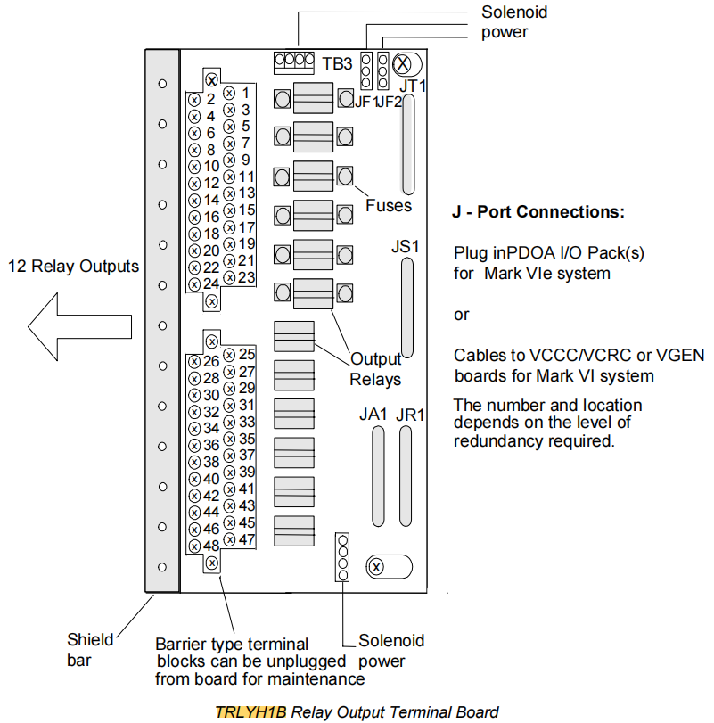 IS200TRLYH1B บอร์ดเทอร์มินอลเอาต์พุตรีเลย์มาตรฐานสำหรับ Mark VIe