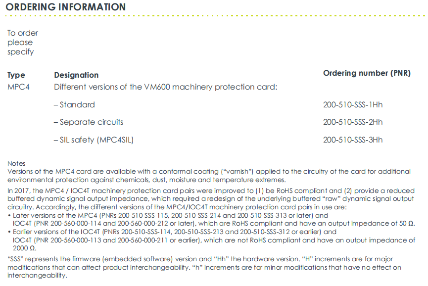 รุ่นนี้เป็นของฮาร์ดแวร์รุ่นแรกๆ ของเวอร์ชัน "มาตรฐาน" (ฮาร์ดแวร์เวอร์ชัน 113) และเป็นหนึ่งในการ์ดเดี่ยวที่คลาสสิกและใช้กันอย่างแพร่หลายที่สุดในระบบ VM600 จำเป็นต้องใช้ร่วมกับการ์ดอินพุต/เอาต์พุต IOC4T เพื่อร่วมกันสร้างช่องทางการตรวจสอบที่สมบูรณ์ ฟังก์ชันหลักของ MPC4 200-510-070-113 คือการประมวลผลสัญญาณไดนามิก 4 สัญญาณพร้อมกัน (เช่น การสั่นสะเทือนและการเคลื่อนตัว) และสัญญาณสำคัญ 2 สัญญาณ (ความเร็วในการหมุน) และผ่านค่าการตั้งค่าการแจ้งเตือนที่ตั้งโปรแกรมได้ การ์ดป้องกันเครื่องจักรจะส่งสัญญาณแจ้งเตือนหรือปิดเครื่องทันทีเมื่ออุปกรณ์ทำงานผิดปกติ เพื่อป้องกันอุปกรณ์เสียหาย