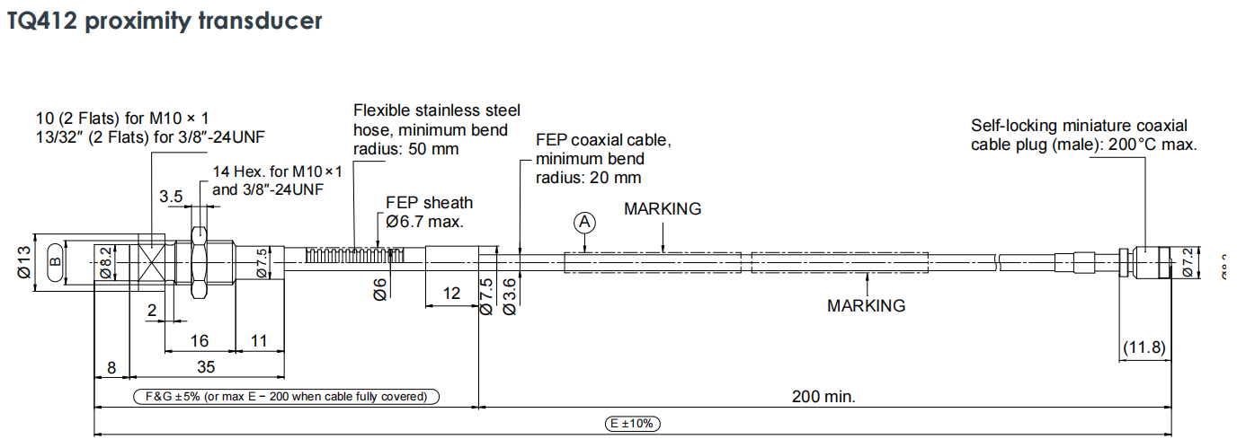ตรวจสอบท่อสแตนเลสแบบยืดหยุ่นและสายเคเบิล FEP ของ TQ412 ด้วยสายตา เพื่อดูการเยื้อง การตัด หรือการเสียรูปที่เกิดจากการขนส่ง อย่าติดตั้งหากมีความเสียหายใดๆ